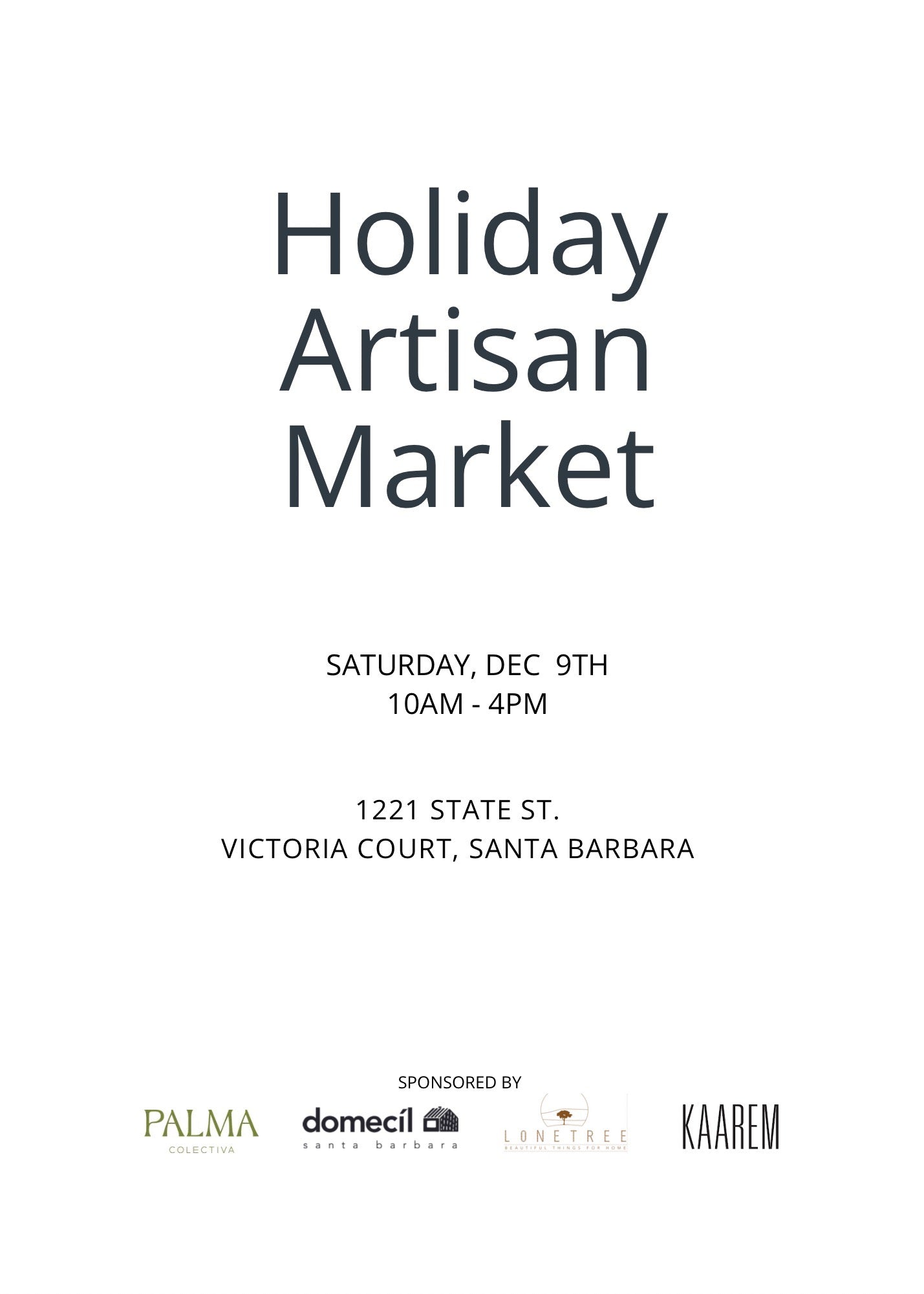 We are co-hosting the Victoria Court Holiday Artisan Market from 10-4pm. Victoria Court, where the KAAREM brick-and-mortar is nestled in, will be filled with artisans, artists, and makers with their amazing work available for sale. Along with the vendors, there will be musical programming and children activities throughout the courtyard. Come hang with the local Santa Barbara community on Saturday and visit our shop!